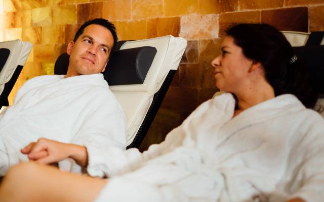 • Paar im Bademantel im Ruhebereich beim Wellness im Park Hotel Bad Lippspringe